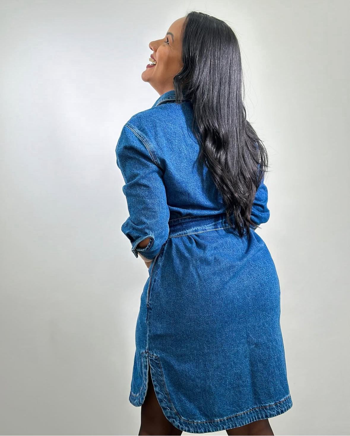 O Vestido Camisa Jeans é aquela peça curinga que te deixa pronta em um passo. A lavagem média realça o azul clássico do jeans, enquanto a modelagem camisa entrega elegância sem esforço.
